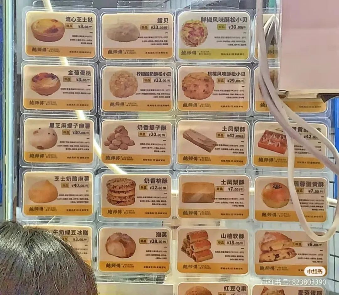 以上这些品牌,我看了看,很多都是比较年轻的牌子,像是墨茉点心局仅是去年才成立的,虎头局也就更早了一年。而年纪长一些的,如1999年成立的詹记,2013年成立的泸溪河,他们则在门店数量上有较大的优势,均已超过了百家。顺应着年轻人的目光越来越投入到新中式烘焙身上,店铺的连续扩张,也能让更多人接触到他们,比如前不久“后生可畏”的虎头局就进驻到了魔都了,引了很多人前去打卡。那,他们都是如何投年轻消费者所好,从而等到了新中式烘焙的春天呢?首先,在我的认知之中,会把产品作为一个品牌的立足根基。西式烘焙之中,吐司、蛋糕、饼干成为了饼房之中的三大抓手。那新中式烘焙店中,什么又是强有力的吸睛神器呢?口说无凭,让我以6家比较火的店先来做个简单的盘点。鲍师傅糕点,由鲍才胜先生在2004年原创于北京,在2013年一档北京电视美食地图节目中,成为了小有名气的口碑小吃。同时依靠着一款“肉松小贝”一战成名。海苔肉松小贝、海苔酥松小贝、奶香提子酥、泡芙、芝士奶酪麻薯、绿豆冰糕、蛋黄酥……强调现做现卖,新鲜好吃,并且主打明厨亮灶的产品生产过程,让消费者能够切实看到整个出品过程。