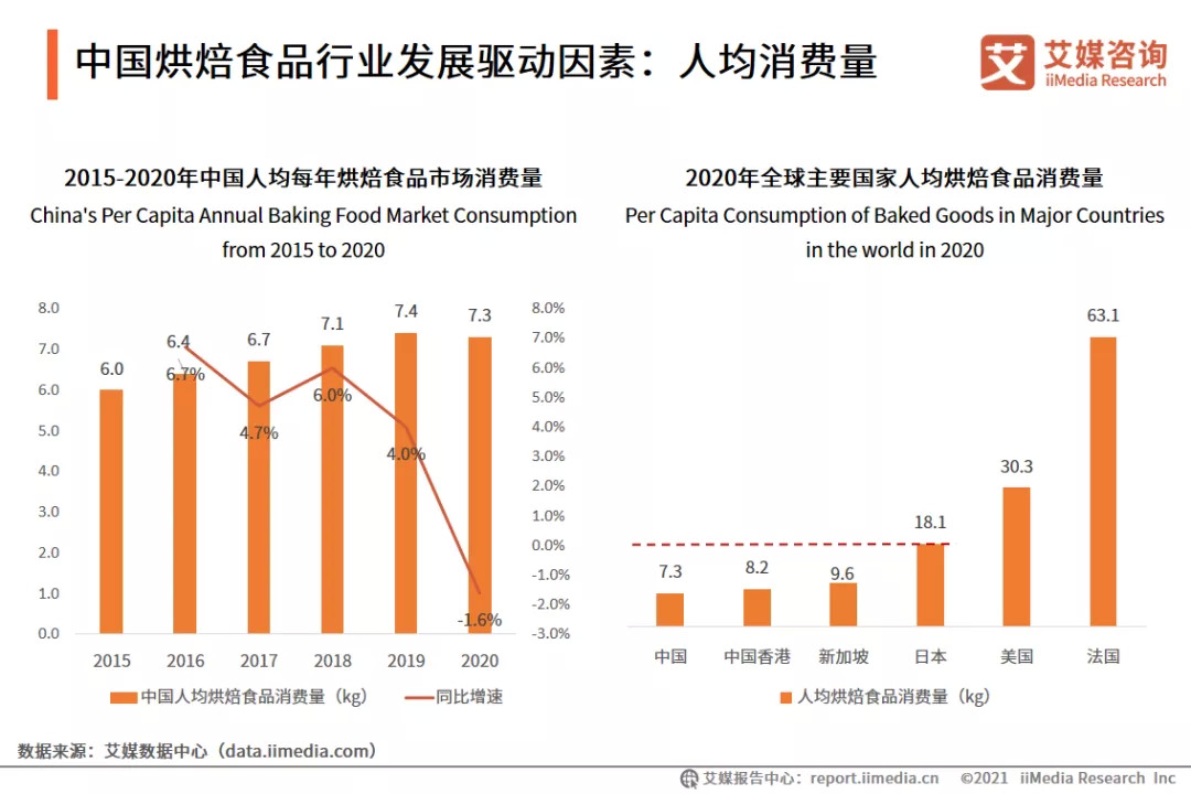 而在2600亿市场的背后,是2020年中国人均烘焙食品消费不过7.3公斤的巨大市场空间。
