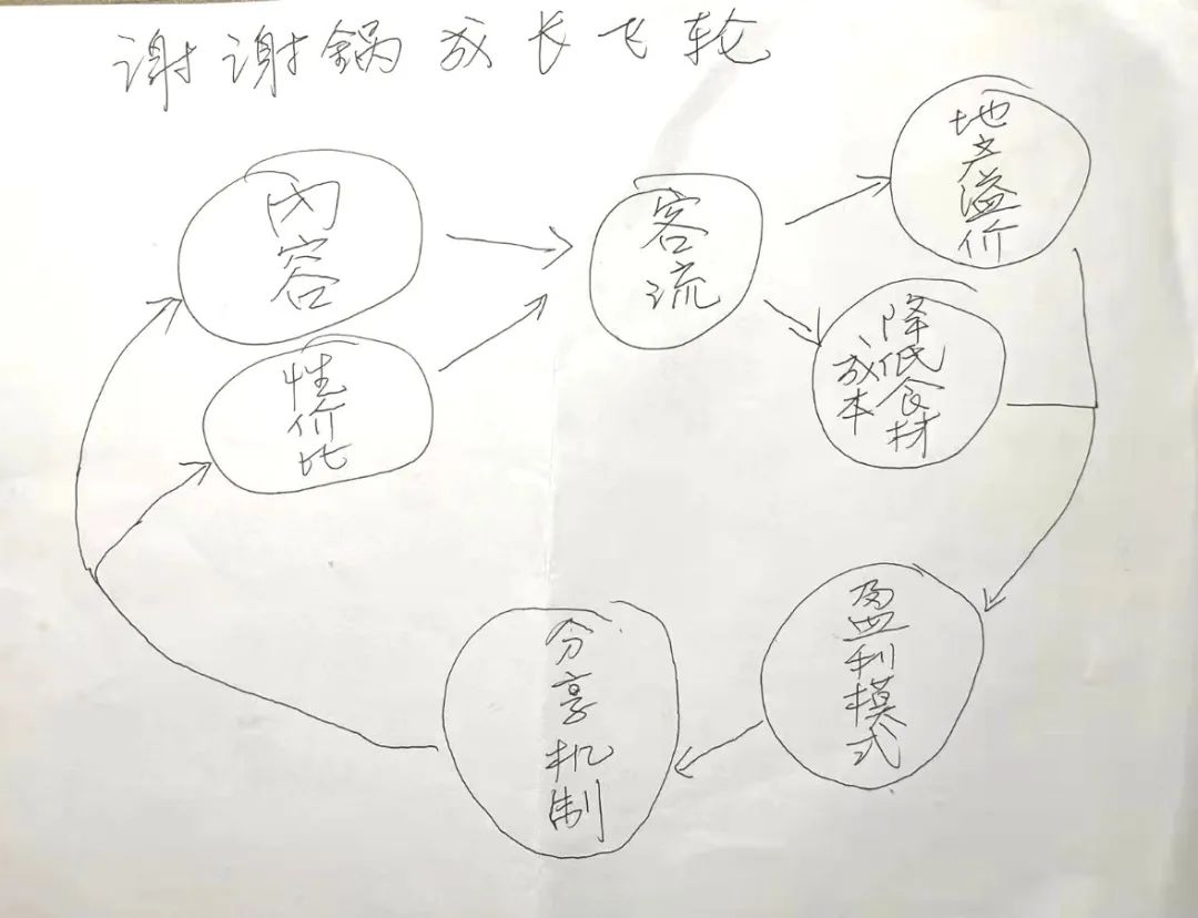 谢谢锅用内容和性价比双轮驱动客流,再以庞大的客流来倒逼商业地产和食材的价格,以此实现盈利,把盈利分享给伙伴,伙伴有动力来制造内容和更好的产品服务体验,从而形成一个完整的商业增长闭环。
